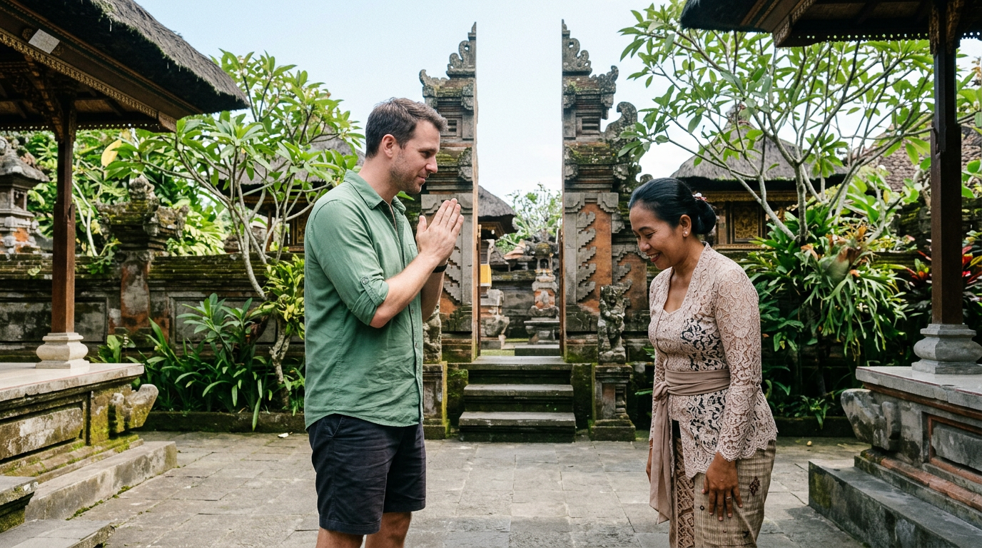 When in doubt, choose Balinese or simple Indonesian expressions paired with a respectful gesture. Small adjustments to how you greet someone signal awareness of local custom and are often more appreciated than perfect pronunciation.