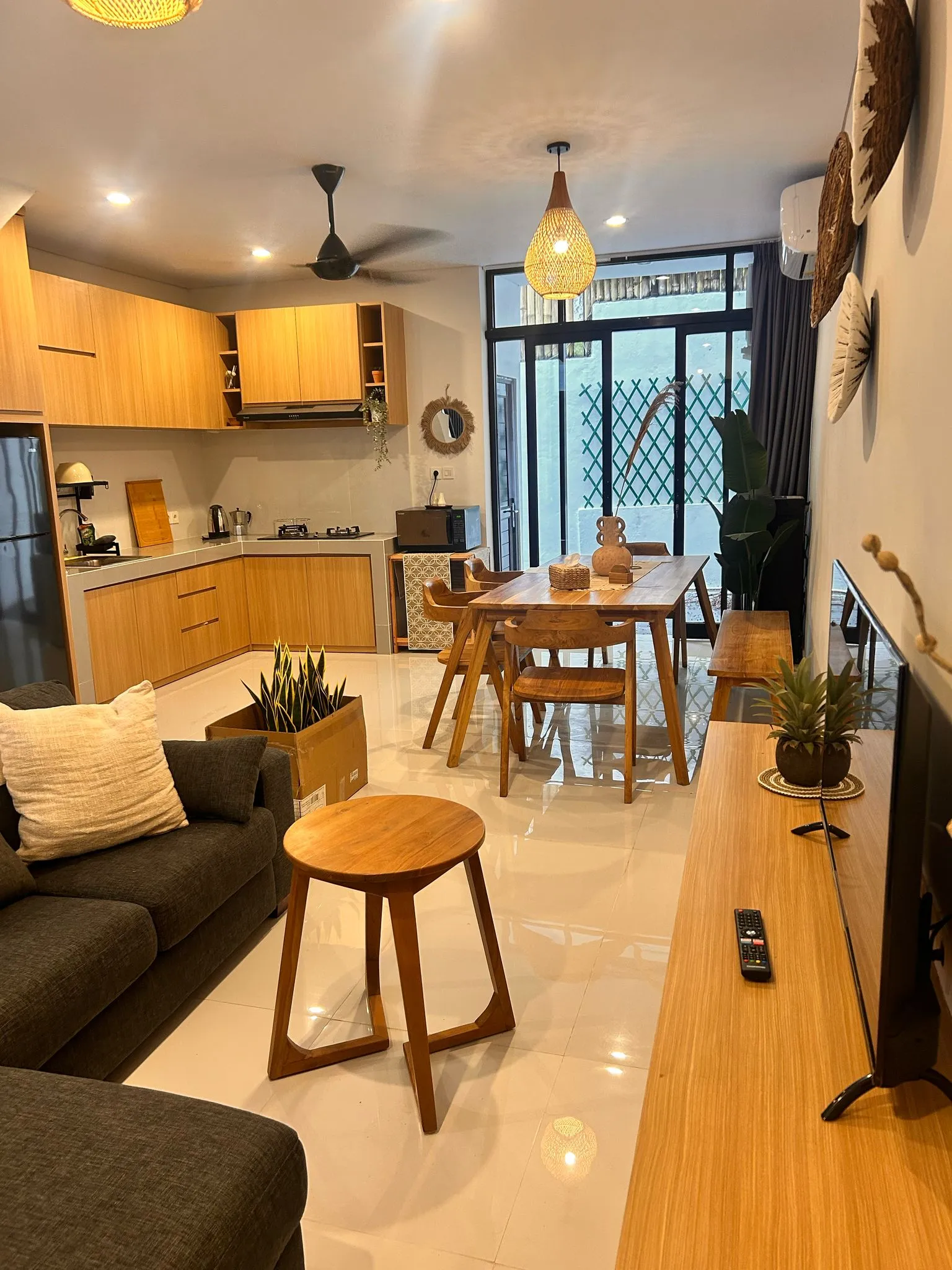 Stay in the heart of Canggu with this modern two-bedroom apartment, located just steps away from the area’s most popular cafes, restaurants, and hotspots. Ideal for urban explorers or business travelers, the villa features a cozy living area, a functional kitchen, and stylish contemporary interiors.