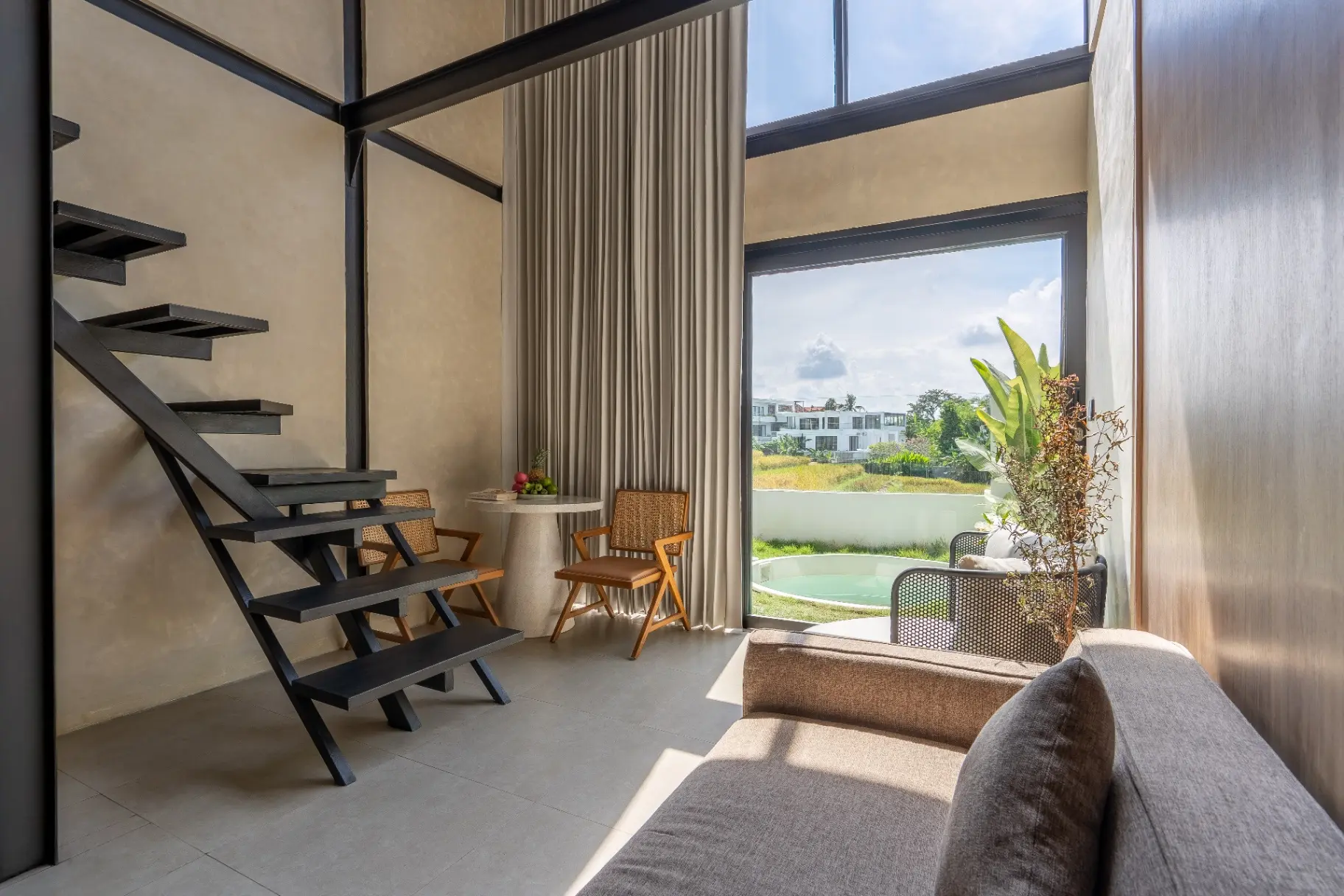 Breathe in the beauty of Canggu at Inhale Loft—your modern escape with sweeping rice field views. This chic one-bedroom loft features a holiday kitchen, inviting living space, and a private plunge pool perfect for cooling off under the Bali sun.