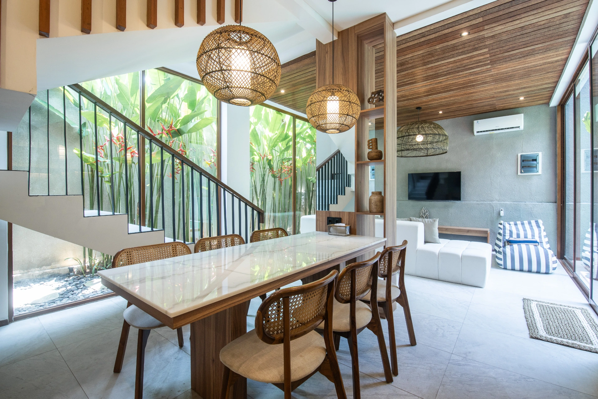 📍 The villa features an open-air living space