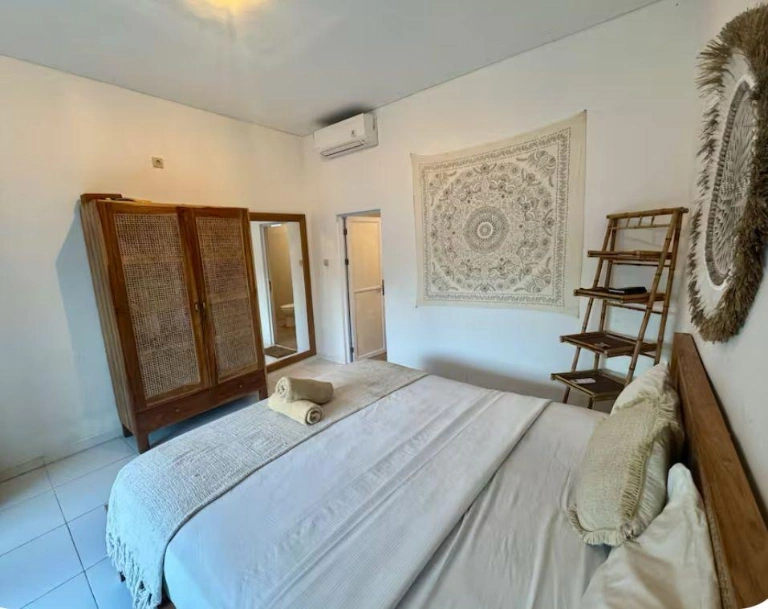 A peaceful private retreat tucked away in a quiet central Canggu neighborhood, blending traditional Balinese elements with minimalist and bohemian design. Surrounded by jungle and river views, the villa offers rooftop relaxation, wellness features like a jacuzzi and cold plunge, and both enclosed and semi-open living spaces for a true Bali lifestyle. Perfect for those who want tranquility while staying close to Canggu’s cafés, beaches, and coworking hubs.