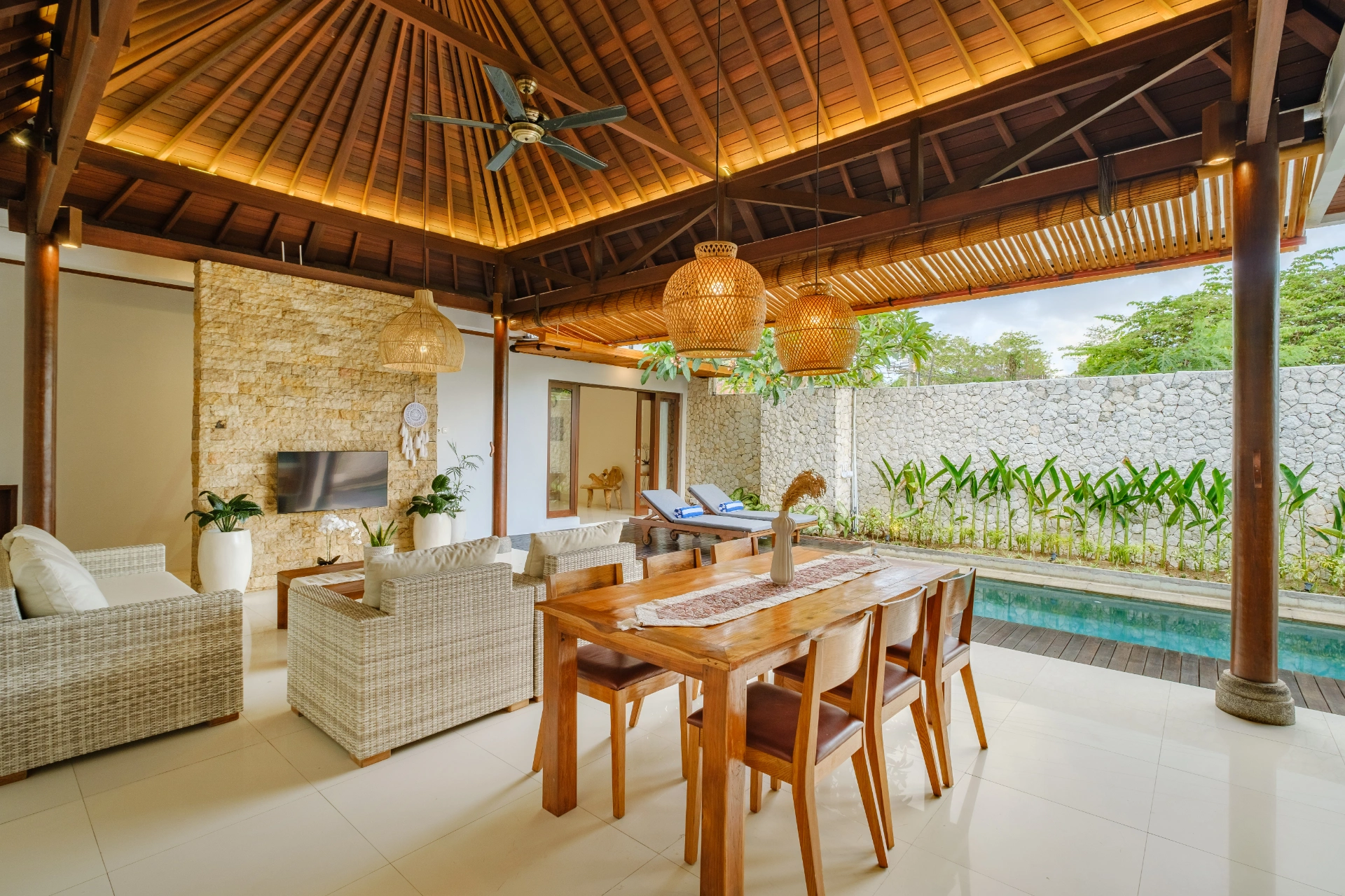 The Tropical Peaceful 2-Bedroom Villa is tucked away in the tranquil area of Pecatu, offering the perfect balance of serenity and easy access to Bali’s most vibrant southern lifestyle destinations.