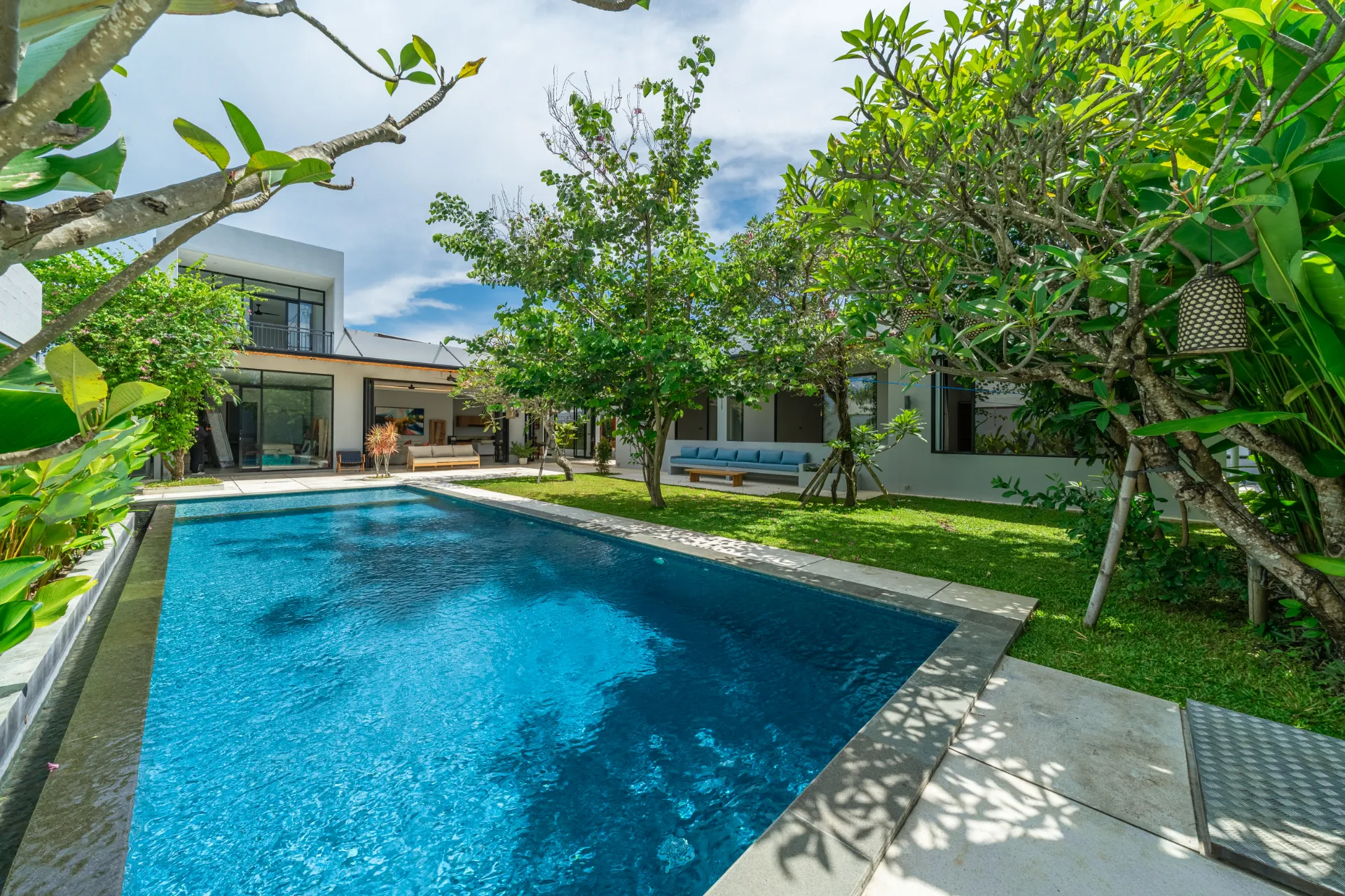 This spacious modern 4-bedroom villa is located in a quiet and desirable residential area of Jalan Raya Bumbak, Umalas, offering an ideal home for long-term living with generous indoor and outdoor spaces.