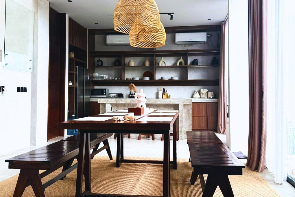 Whether you're preparing fresh local produce or enjoying takeout from Canggu's best cafes, the kitchen has everything you need—including modern appliances and a cozy dining table for shared meals and late-night chats.