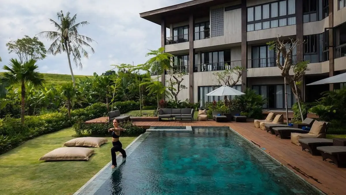 - Multi-Level Pool & Yoga Deck: Start your day with yoga or meditation on the spacious deck overlooking the multi-level pool, framed by tropical gardens.