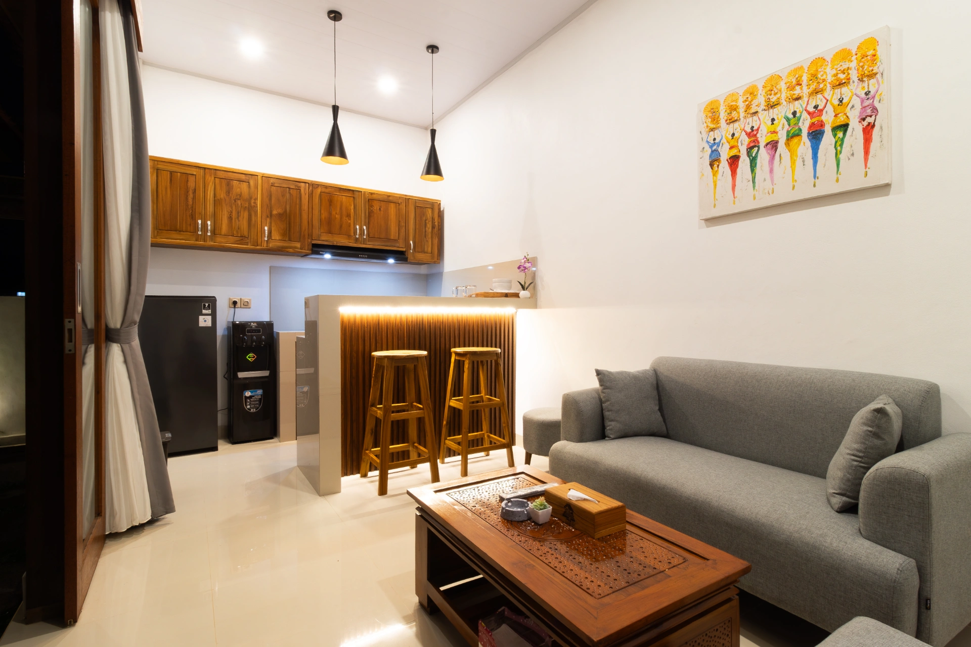A beautiful romantic 1 bedroom en suite bathroom villa with private swimming pool, breakfast, air conditioning, living-dining area, equipped kitchen located in north Ubud, 10 minutes ride to Ubud Center.
