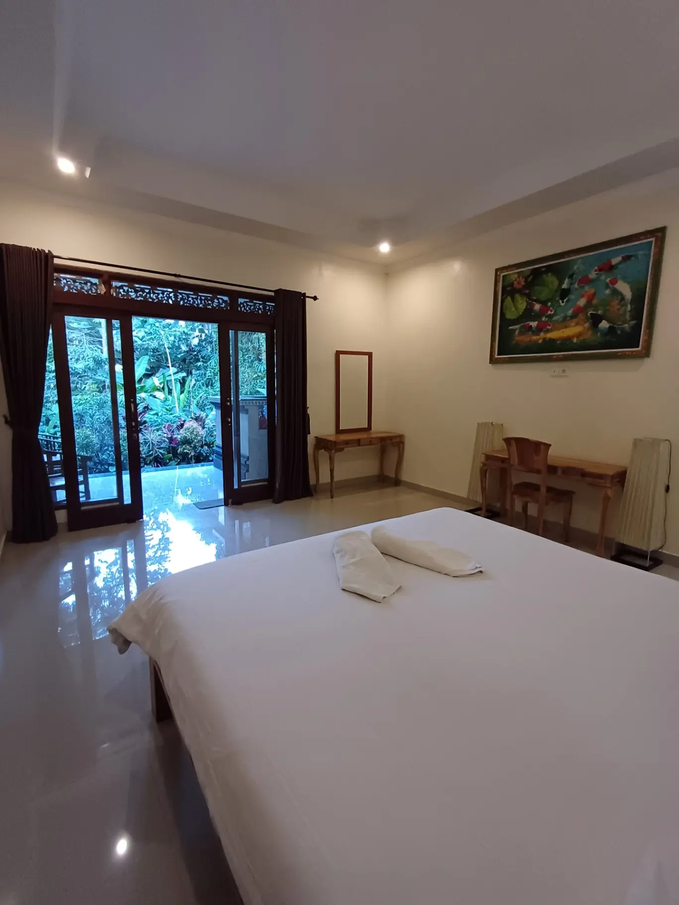This house is located on Jalan Sriwedari, Ubud. It offers views of a small forest and rice fields. It's about a 10-minute motorbike ride to central Ubud.