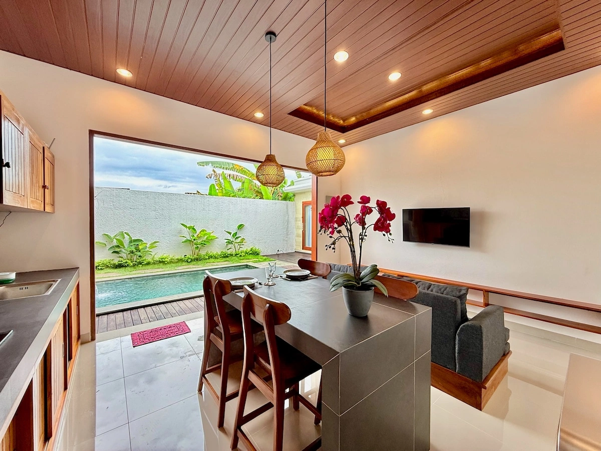 The open-plan, covered living area invites you to spend long evenings outdoors, while the private pool offers a refreshing respite from the tropical villa is particularly well-suited for extended stays.
