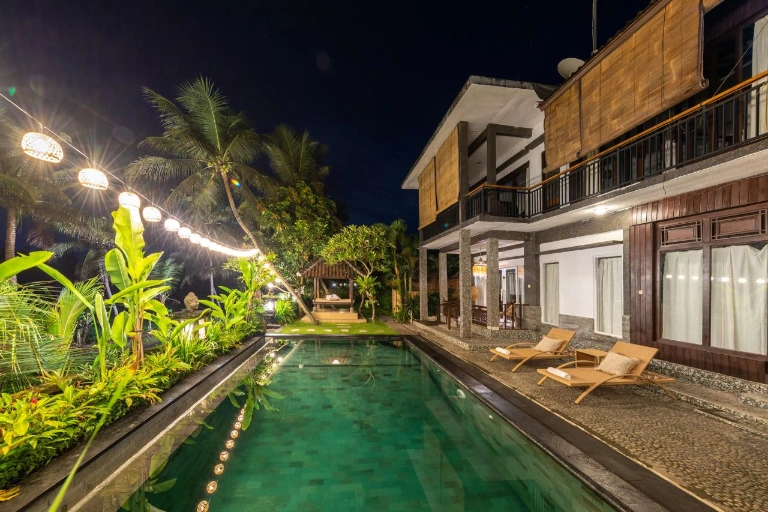 The community combines traditional Balinese design with modern comforts, creating a relaxed environment where guests can enjoy both privacy and shared moments together.