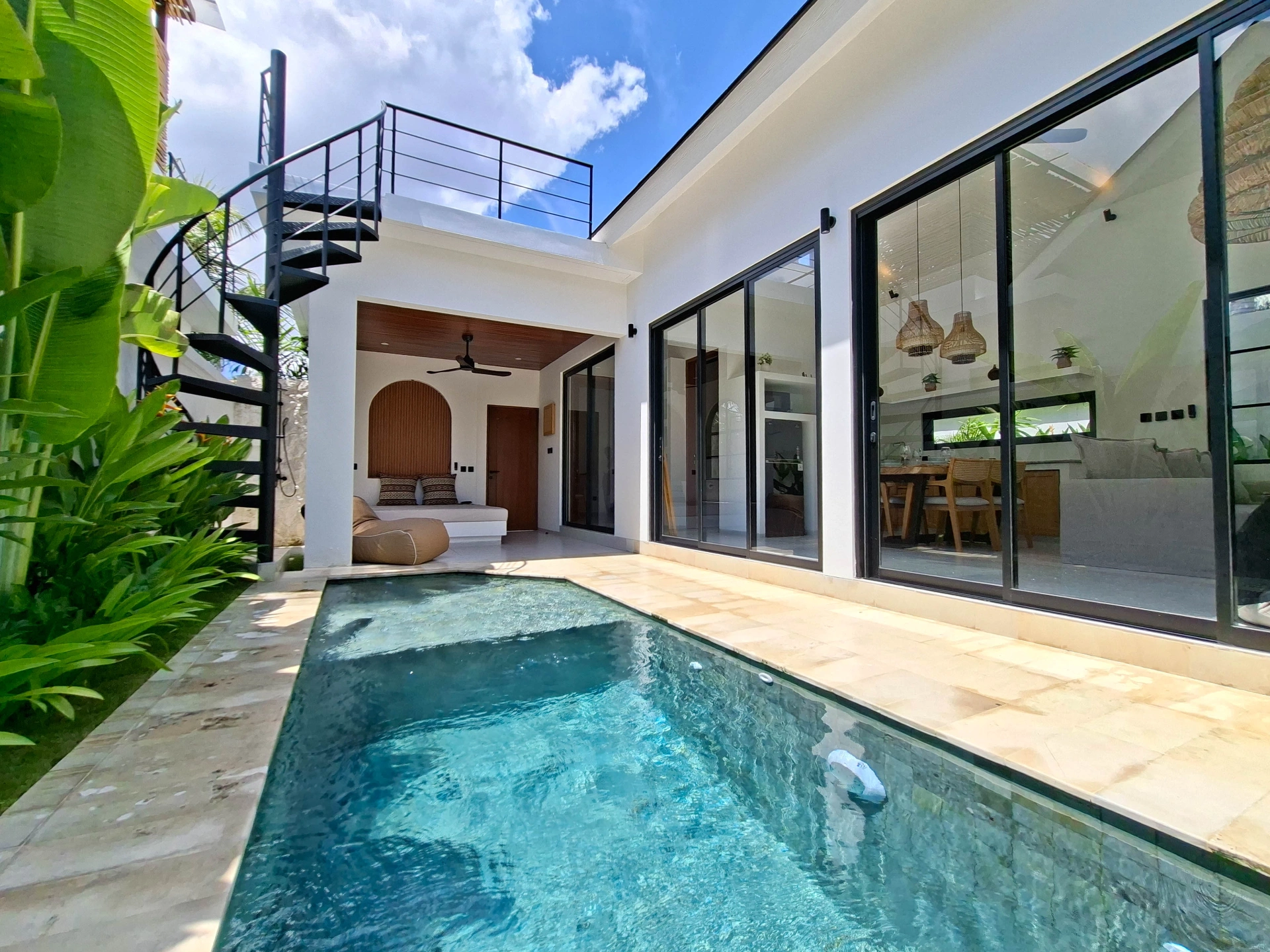A modern 1-bedroom villa located in the quiet area of Abianbase, Mengwi. Built on 144 sqm of land with a 52 sqm building, the property offers a compact yet comfortable living space designed for tropical living. The villa features a private swimming pool and a rooftop terrace, creating additional outdoor space for relaxation or entertaining. Fully furnished and equipped with a functional kitchen, the home is ready for immediate occupancy and well-suited for mid-term or long-term stays. With high-speed internet and a peaceful village setting, This is ideal for remote workers, couples, or individuals seeking a calm lifestyle while still being within easy reach of Canggu and Pererenan.