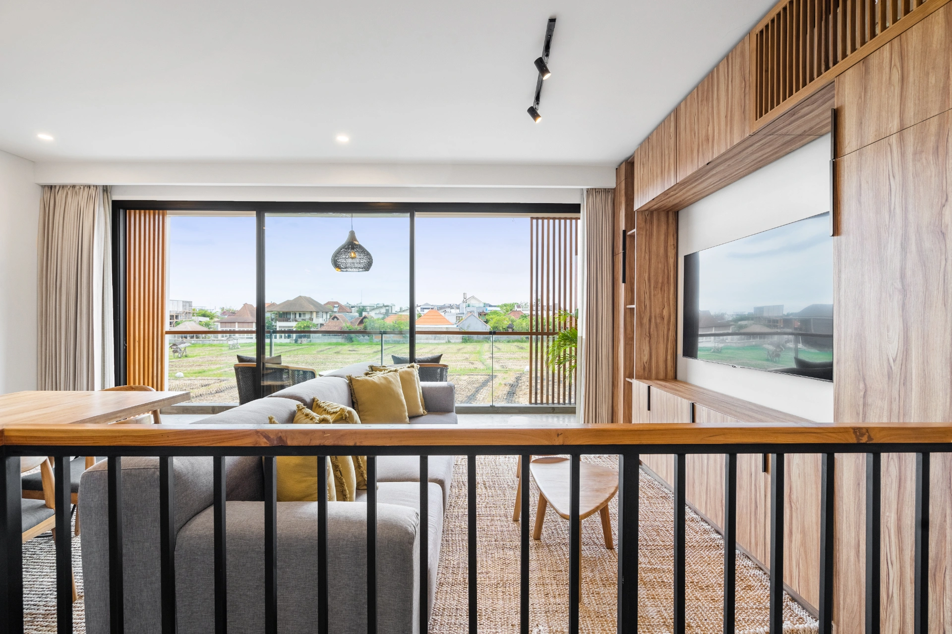 Berawa Townhouse 7 is a stylish 2BR villa in the heart of Berawa, Canggu, featuring sleek design, expansive rice field views, and modern comforts. With a private pool, rooftop jacuzzi, and shaded lounge, it’s the perfect Bali villa for families, friends, or remote workers.