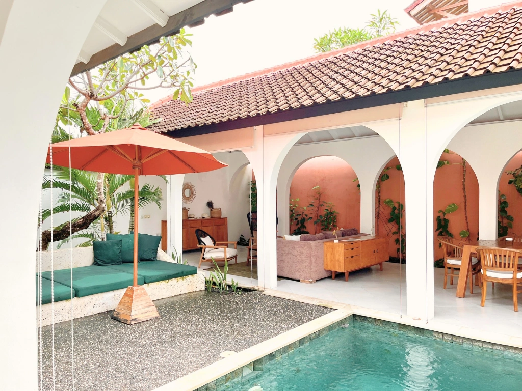 Welcome to our stunning two-bedroom villa nestled in the heart of Seminyak, Bali. Designed with beautiful arched architecture, our villa boasts an open living room, courtyard that seamlessly merges indoor and outdoor living. Guests can bask in the tropical sunshine while lounging by the refreshing pool or exploring the lush garden oasis.