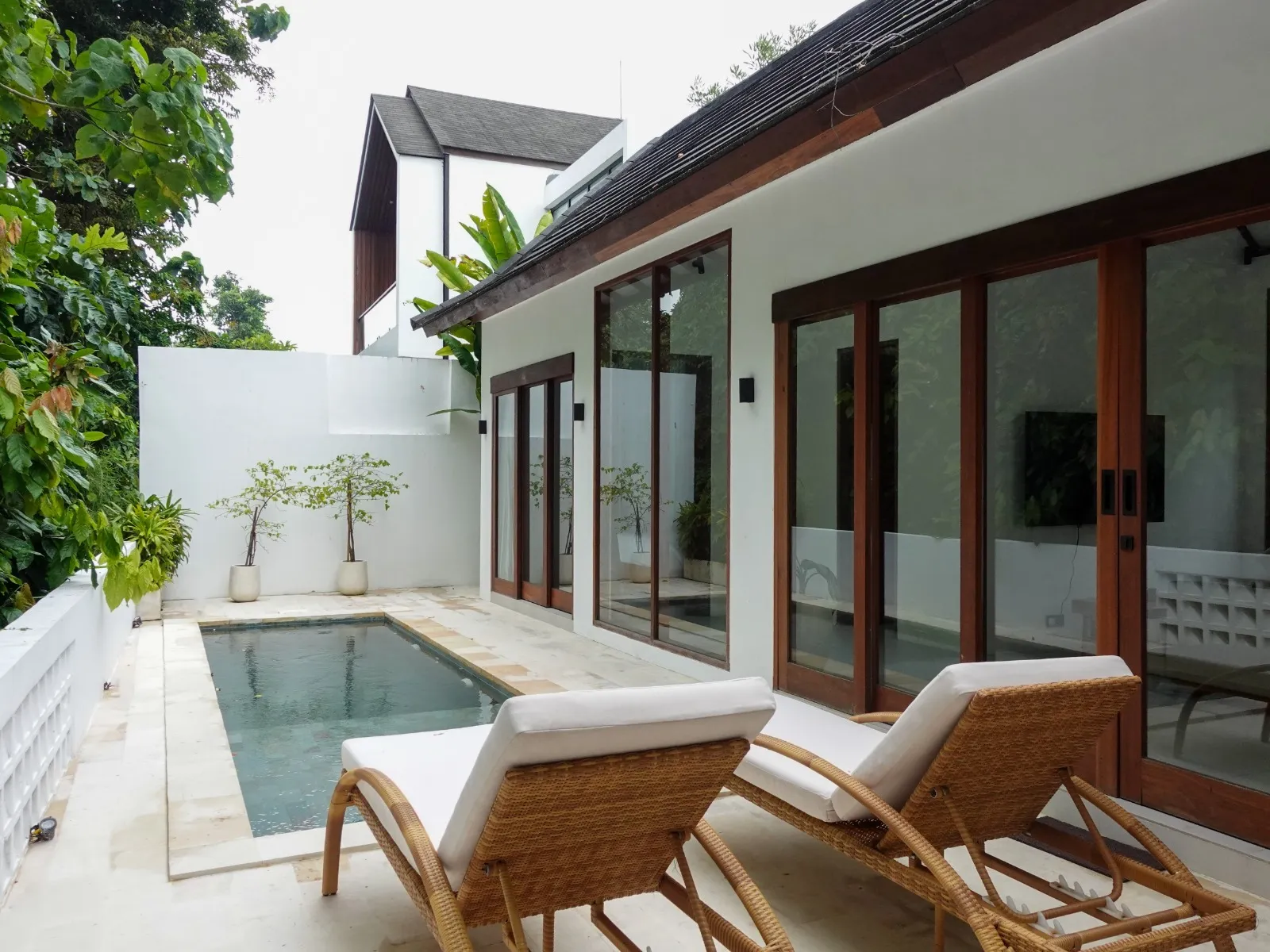 A newly completed one-bedroom villa located in the peaceful village of Cepaka, surrounded by lush greenery and a calm residential atmosphere. Designed for relaxed tropical living, the villa features a private swimming pool, garden area, and open living spaces that allow natural light and airflow throughout the home.