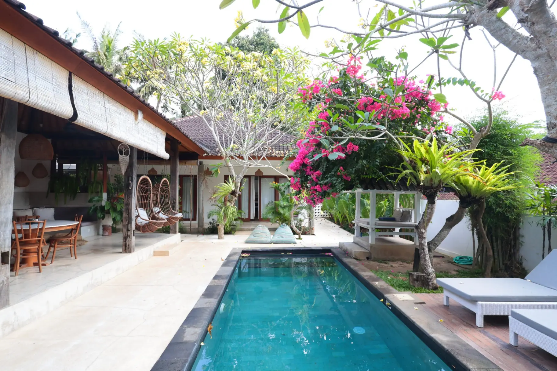 Peaceful 2BR villa with private pool in quiet Cepaka, just 10 mins from Canggu. Features 2 bathrooms, enclosed living room, full kitchen, and lots of natural light. Perfect for couples or small families looking for comfort, privacy, and calm. Fully furnished and ideal for monthly stays.