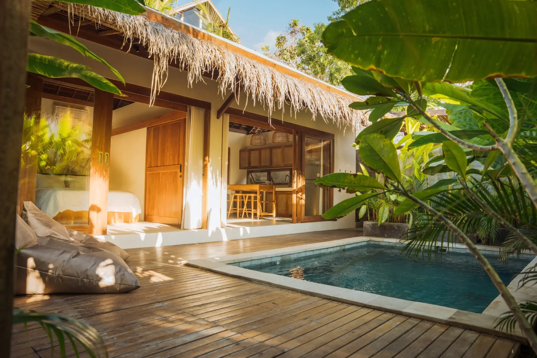 For those working remotely, the villa includes a dedicated office space, allowing you to stay productive while surrounded by tranquility. The fully equipped kitchen is perfect for preparing meals, lots of closet and storage space and the indoor/outdoor bathroom provides a unique, refreshing experience. You’ll also enjoy your own private pool and a lush garden that creates a peaceful atmosphere, ideal for unwinding after a productive day.